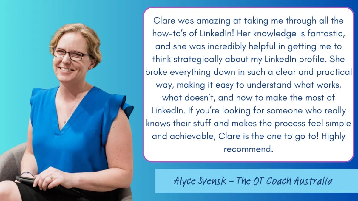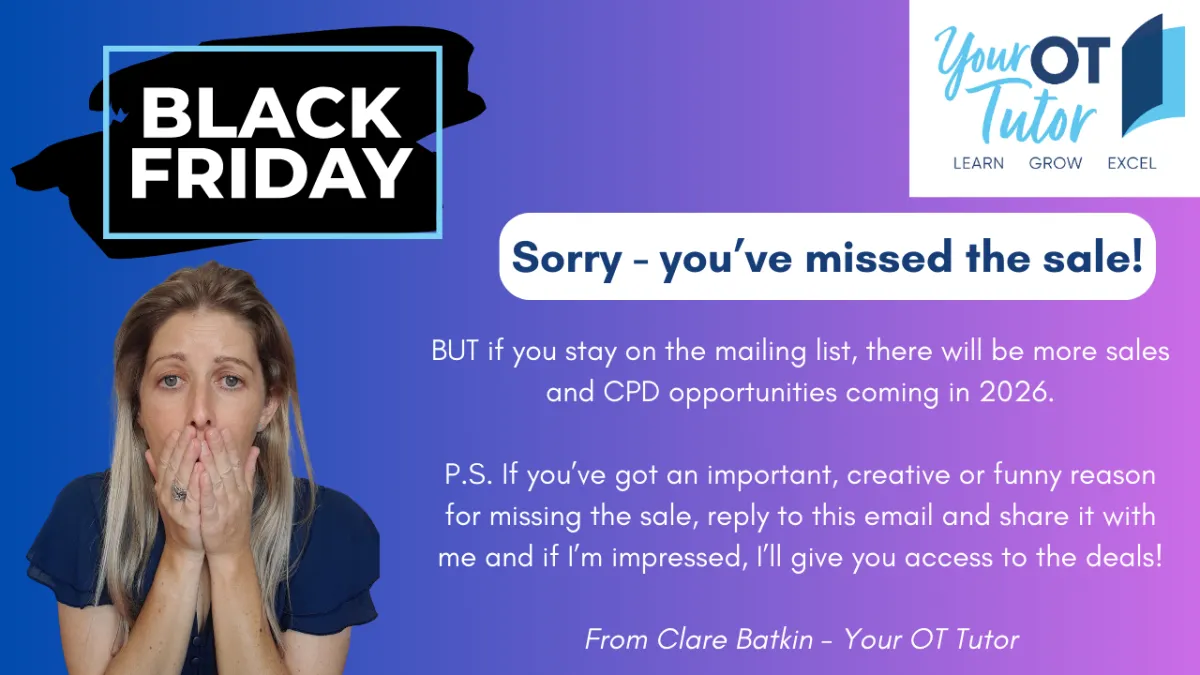Clare has been an invaluable resource for me as a new graduate OT - I regularly check her business page: Your OT Tutor and have recommended my colleagues do the same for easy to digest updates and tips! Clare has gone out of her way to assist me with my CPD portfolio and provided me with such a helpful template to use (a life saver!). Clare is extremely helpful, approachable, and very responsive despite her busy schedule.