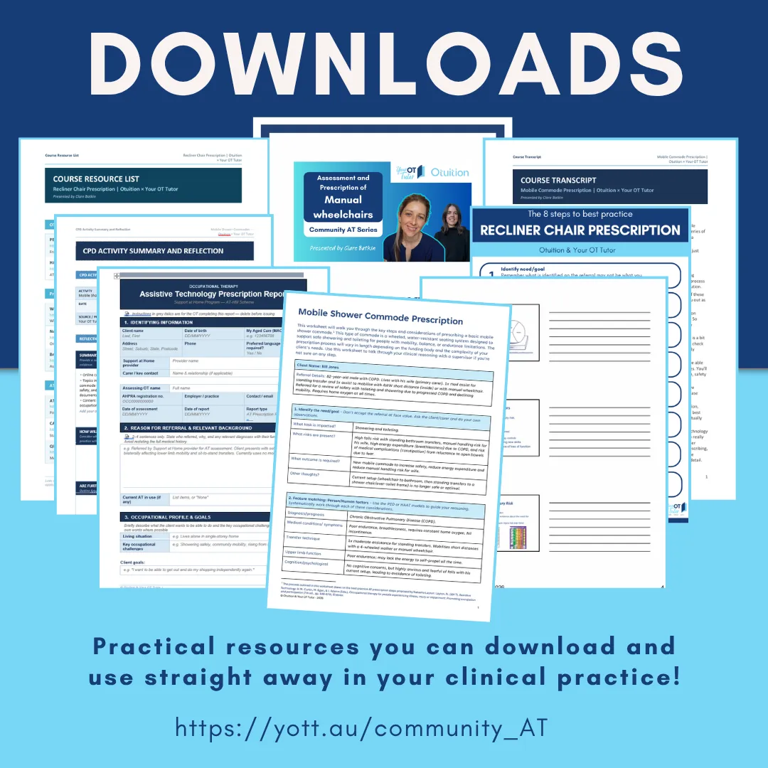 Developed in a special collaboration between Your OT Tutor and Otuition, this bundle brings together five practical courses to help community OTs strengthen their approach to everyday assistive technology prescription.