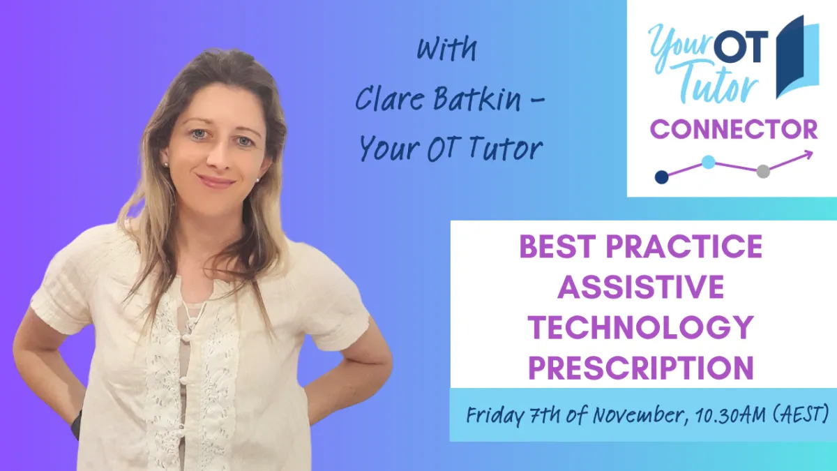 Clare has done a fabulous job with spearheading 'Your OT Tutor', a journal club that has really helped me stay up to date with the current evidence on topics directly relevant to my practice. Her approach is comprehensive yet practical, given how time-poor clinicians often are, and I am very much looking forward to our 2023 sessions. I highly recommend Clare to other OTs - those starting out as well as others who are more established in the profession - she is an absolute asset to both.